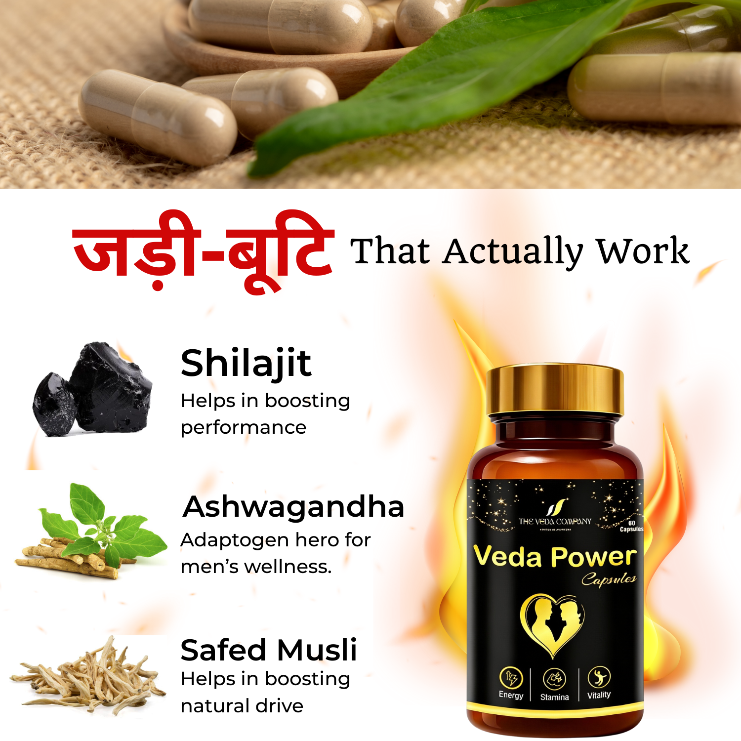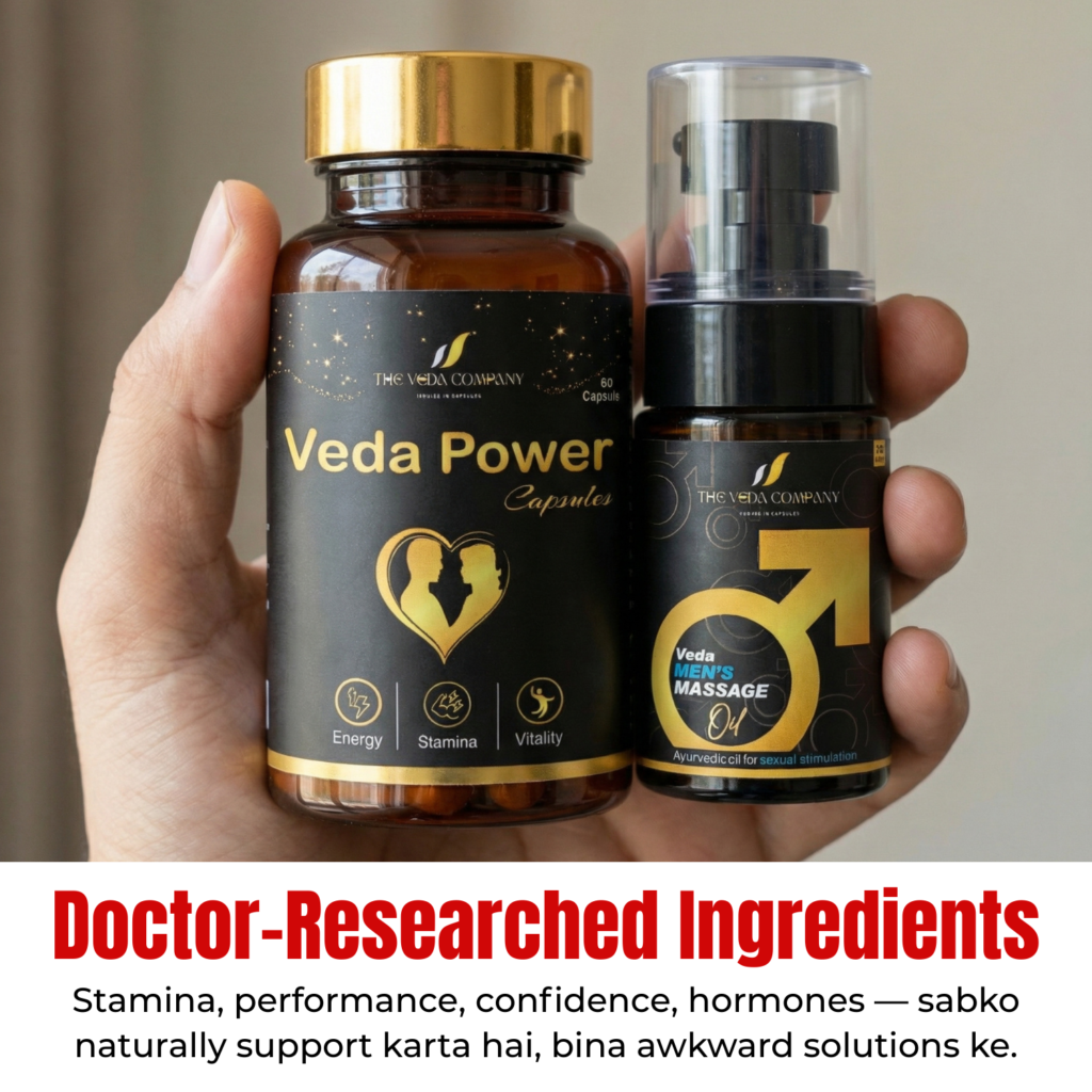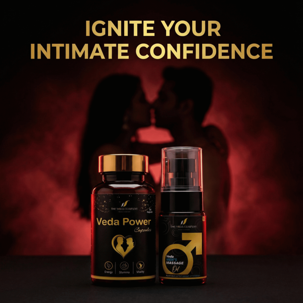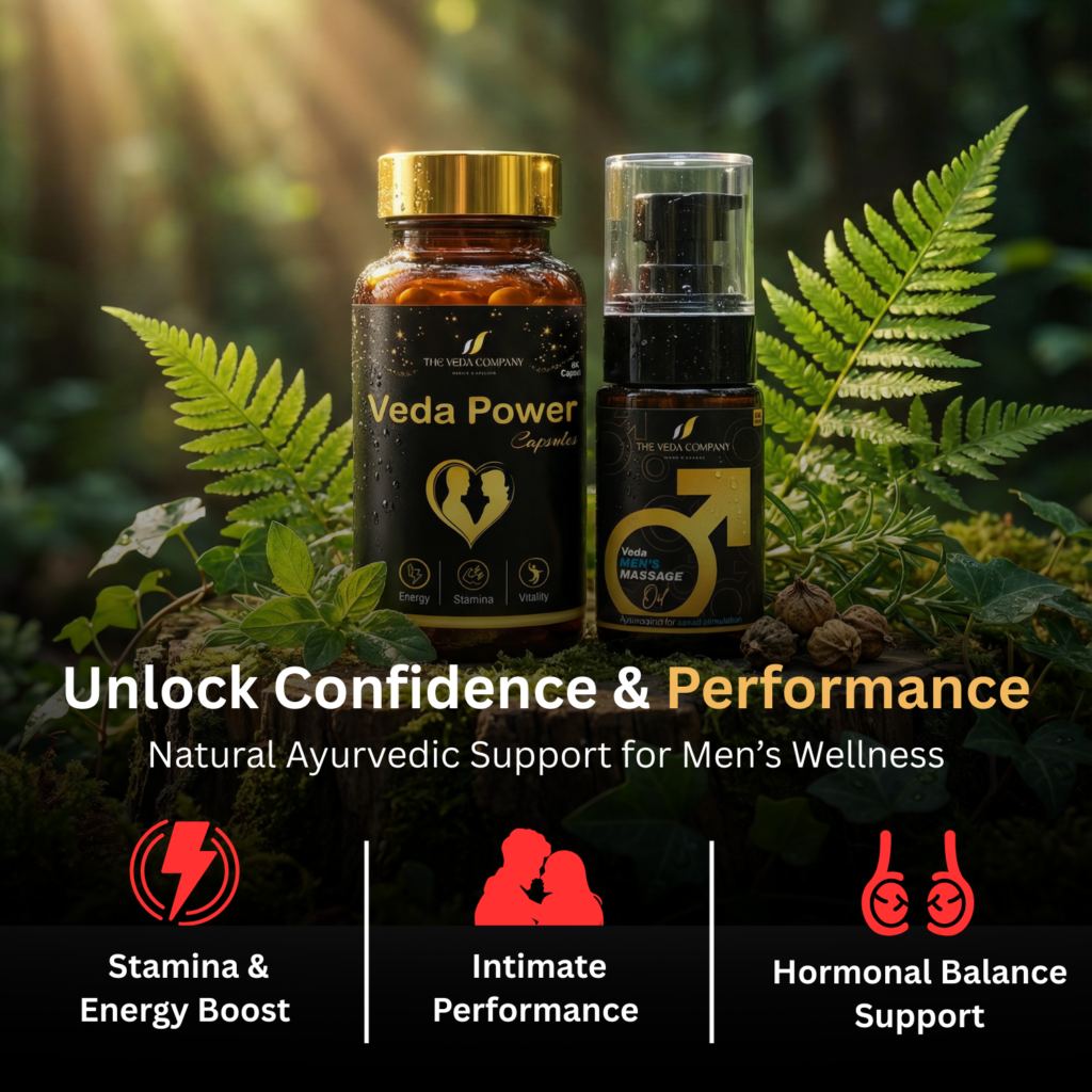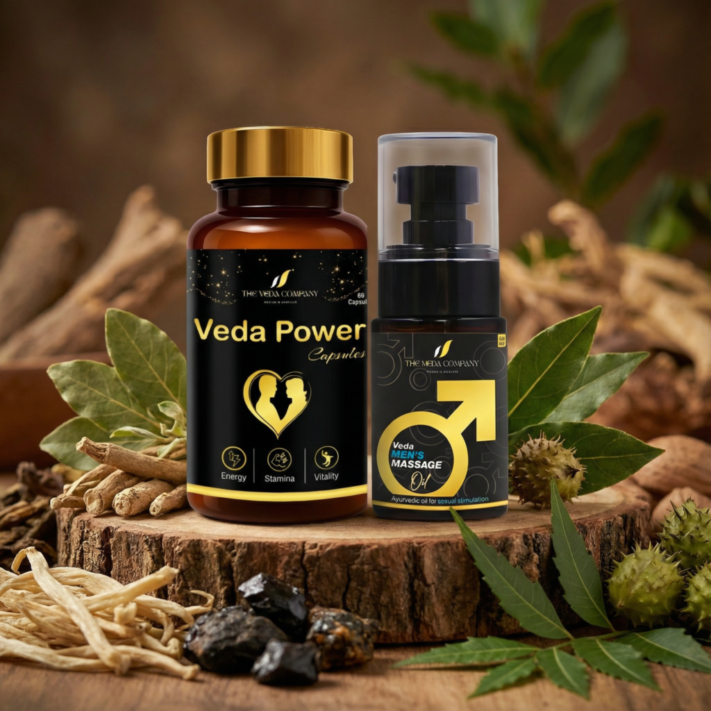 VEDA Men’s Power Capsule & Men’s Veda Massage Oil पुरुषों की ताकत, स्टैमिना और आत्मविश्वास को नई ऊर्जा देने के लिए खास तौर पर बनाए गए हैं।