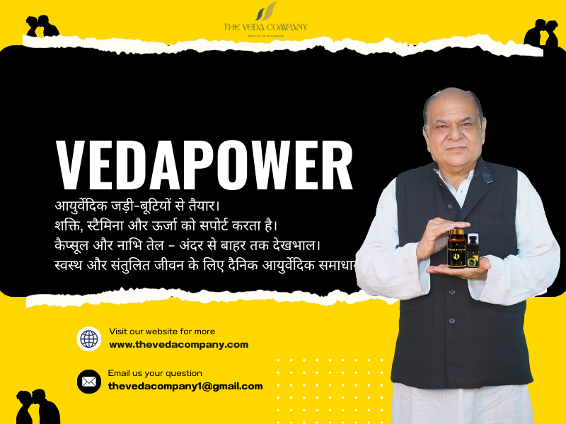 VEDA Men’s Power Capsule एक हर्बल सप्लीमेंट है, जो पुरुषों की ऊर्जा, स्टैमिना और आत्मविश्वास को सपोर्ट करने के लिए बनाया गया है।